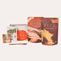 The RYZE Lasting Energy Bundle is ideal for those looking for daily rituals that support a healthy gut. immunity and all day energy without loading up on caffeine. Pair our best-selling mushroom coffee. less than half the caffeine of your average cup of joe with the RYZE 6-mushroom blend and our just as powerful chicory blend featuring the 6-mushroom blend and natural prebiotic superfood. chicory root.