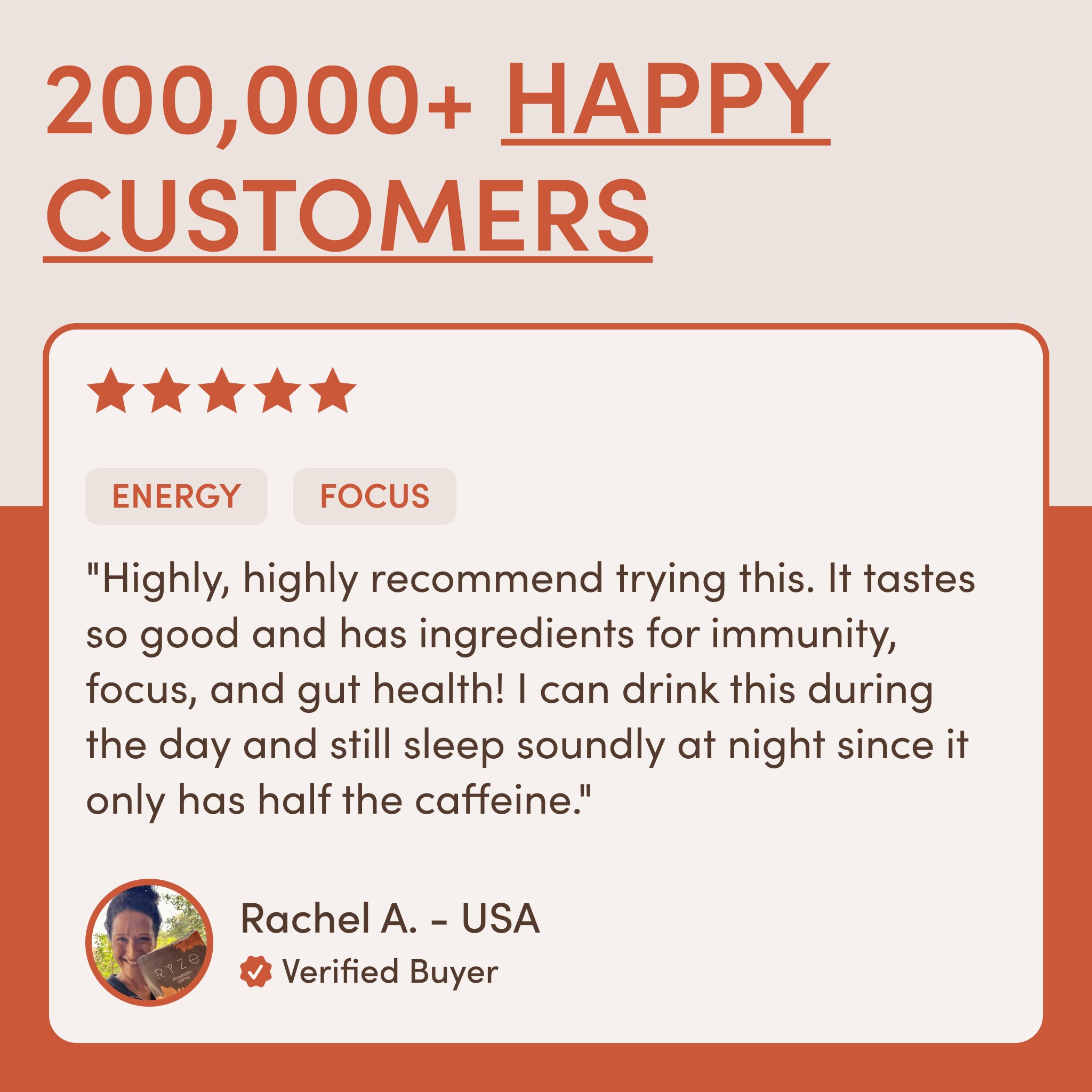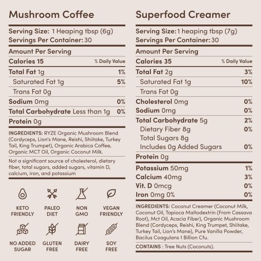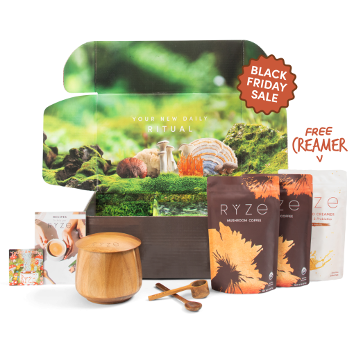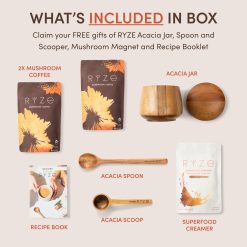 Accelerate your results with two cups a day and create your RYZE ritual. Enjoy two cups of mushroom coffee a day with our superfood creamer for an extra mushroom kick and creamy latte feel. On your first order. you’ll receive a new tablespoon scoop for perfect portioning. a mushroom jar designed to keep your blend fresh. and a spoon for stirring.
